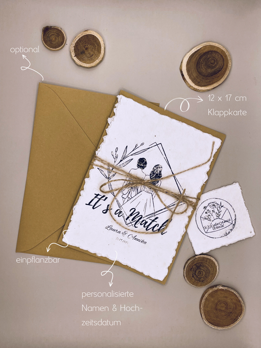 Hochzeitskarte "It's a match" gleichgeschlechtliches Paar Frauen | Saatgutkarte zum Einpflanzen | 12 x 17 cm Klappkarte