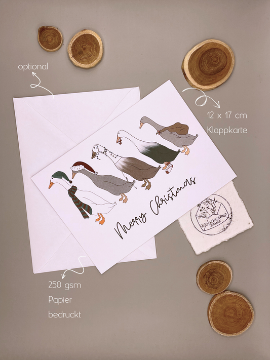 Weihnachtliche Laufenten Karawane | 12 x 17 cm Klappkarte