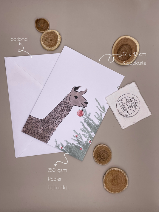 Weihnachten mit einem Lama | 12 x 17 cm Klappkarte